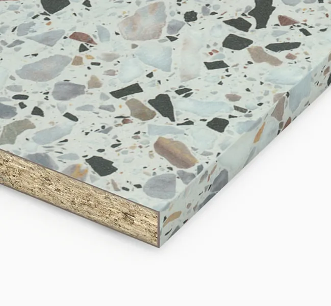 A thin worktop, the core of which is a P5 wood-based board. The surface of the top is covered with decorative HPL laminate on both sides. Long edges finished with ABS edging 0.8 mm thick using PUR glue.