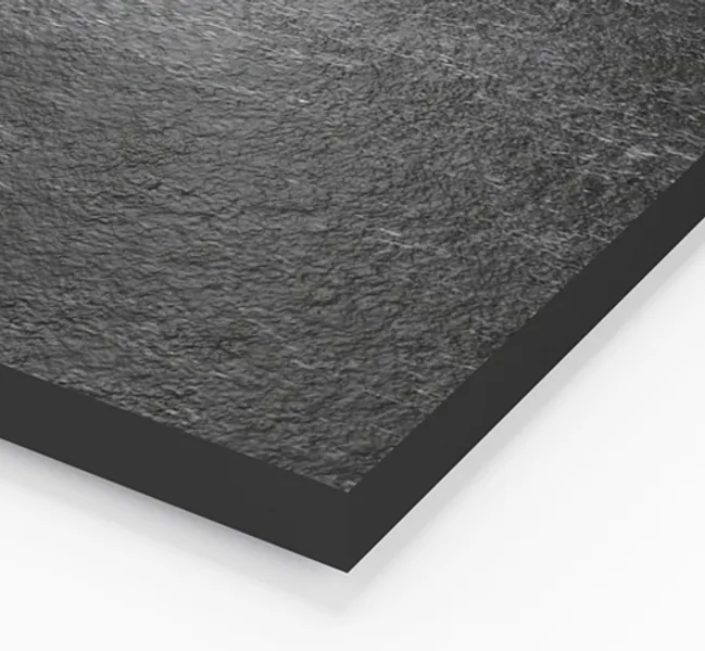 Compact high pressure laminate in standard quality according to EN 438-4:CGS. With uniform black-coloured core and decorative melamine resin surface on both sides.