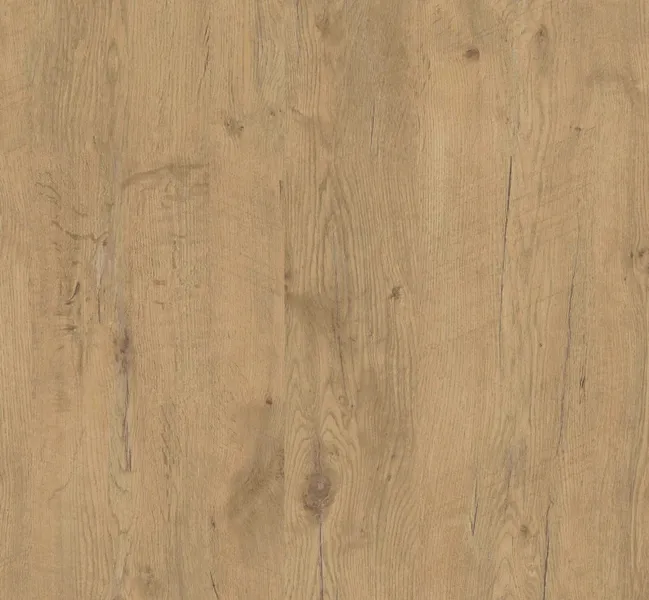 A pattern of rustic, natural oak, retaining its most characteristic raw elements. Warm, honey-coloured with clearly visible details of the hand-worked wood. It blends in perfectly with dark unicolours (green, burgundy, navy blue) as well as with white, black and concrete decors and dark stones.